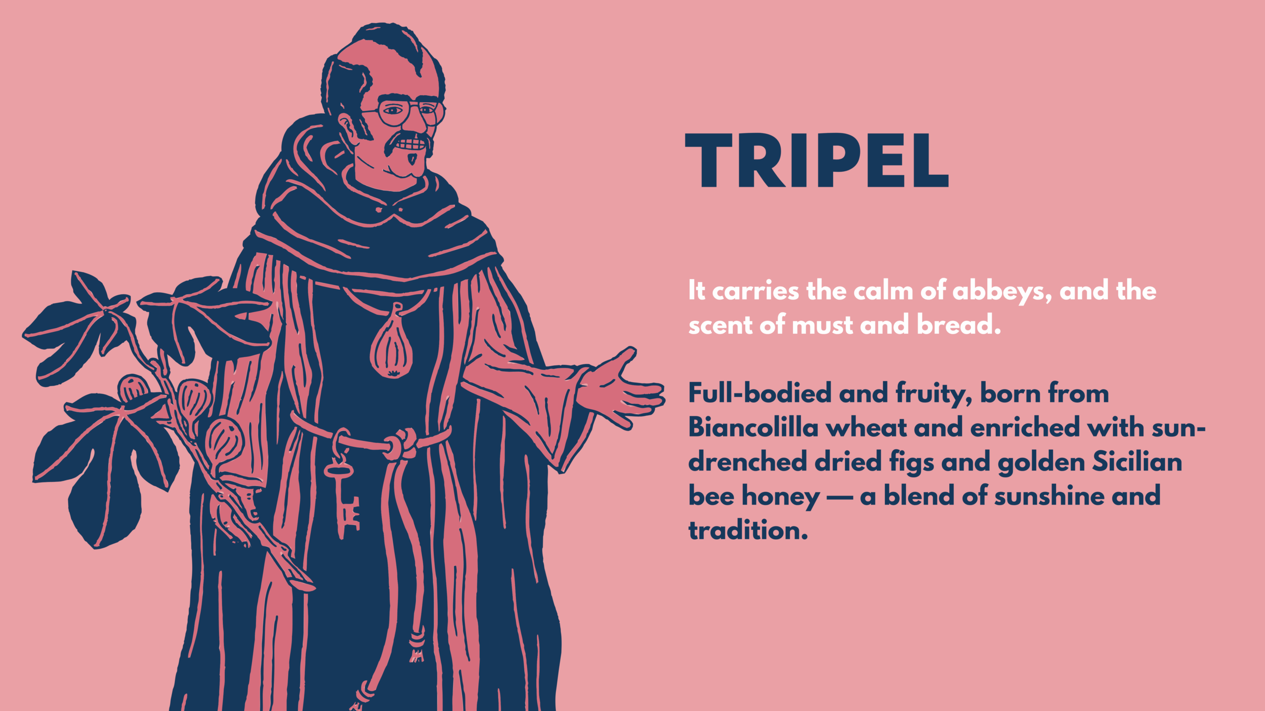Bière de style abbaye bénédictine. Tripel avec du blé sicilien Biancolilla, des figues sèches et