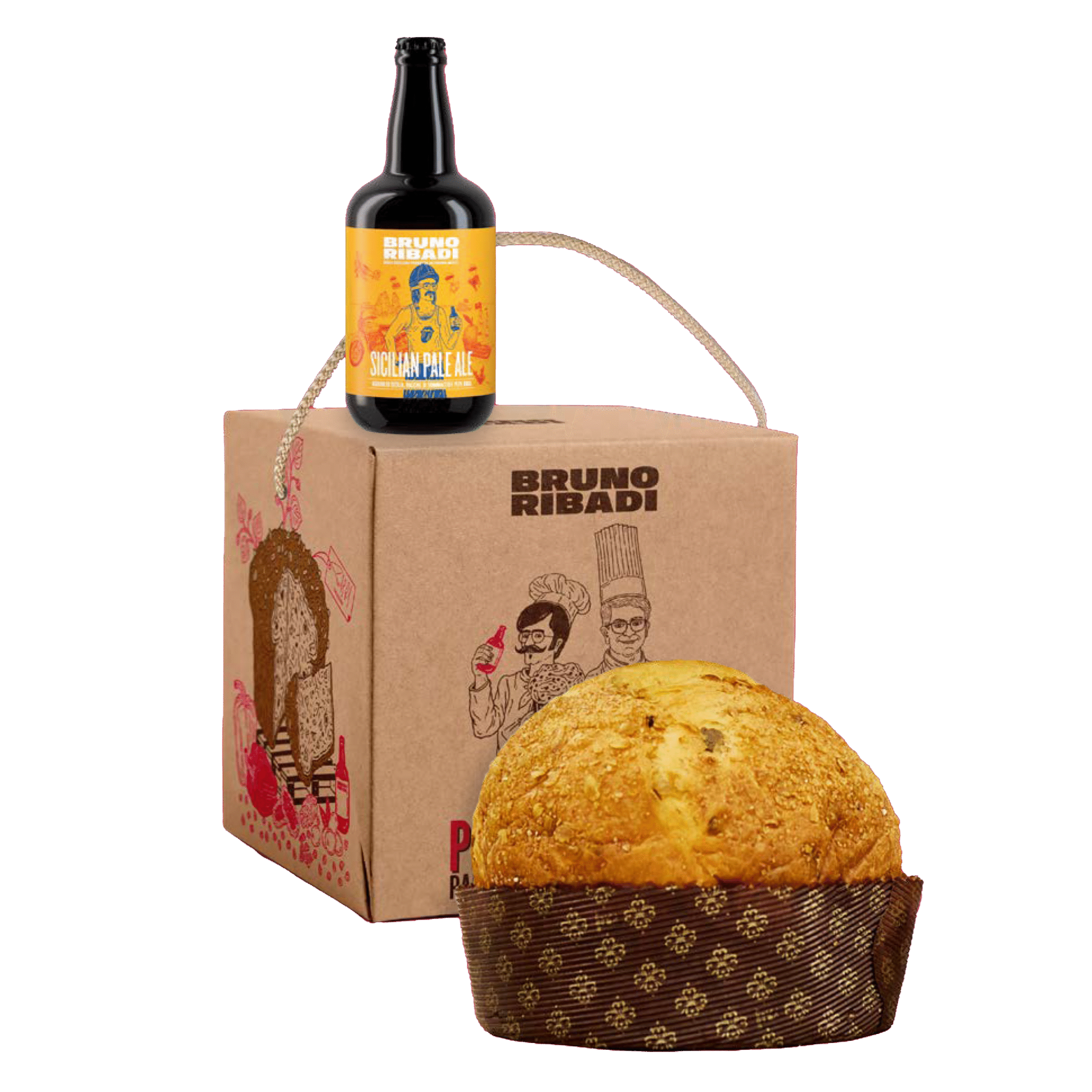 Its soft and fragrant texture is the result of long and meticulous preparation. The sourdough starter, created by Master Palazzolo using a personal, secret technique refined over the years, is the basis for the production of a rich and flavorful savory panettone. Bruno Ribadi’s Sicilian Pale Ale is used in the leavening process, giving Pankaretto a subtle aroma with hints of Ribadi. Perfect as an appetizer but also suitable for a variety of occasions. Available for Christmas 2025 with a 75cl bottle of Sicilian Pale Ale.